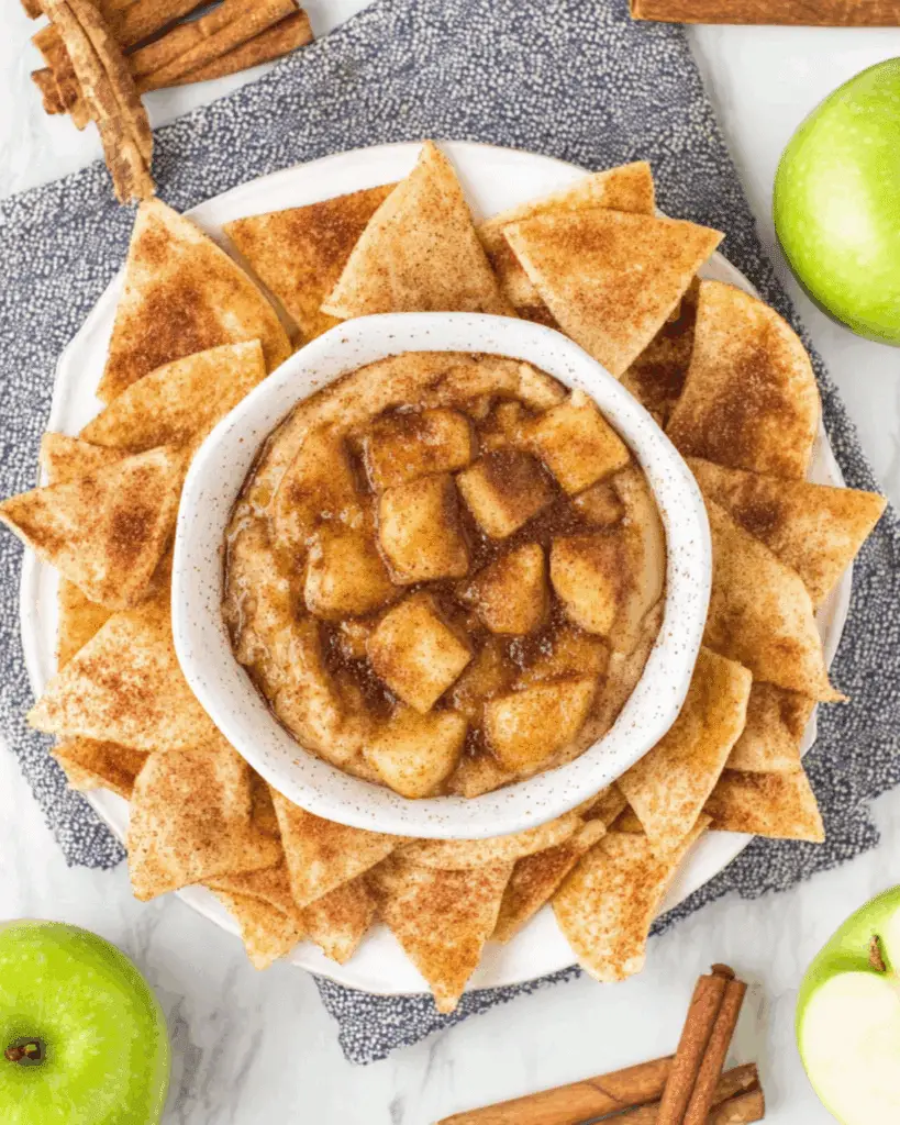 - Serve the warm apple dip with cinnamon sugar chips on the side for dipping.