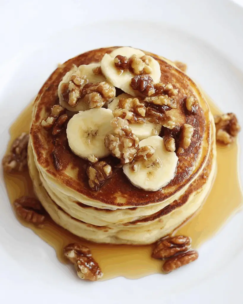 These banana nut pancakes are moist, fluffy, and packed with sweet banana flavor and crunchy toasted nuts. Perfect for a cozy breakfast or a brunch-worthy dish.