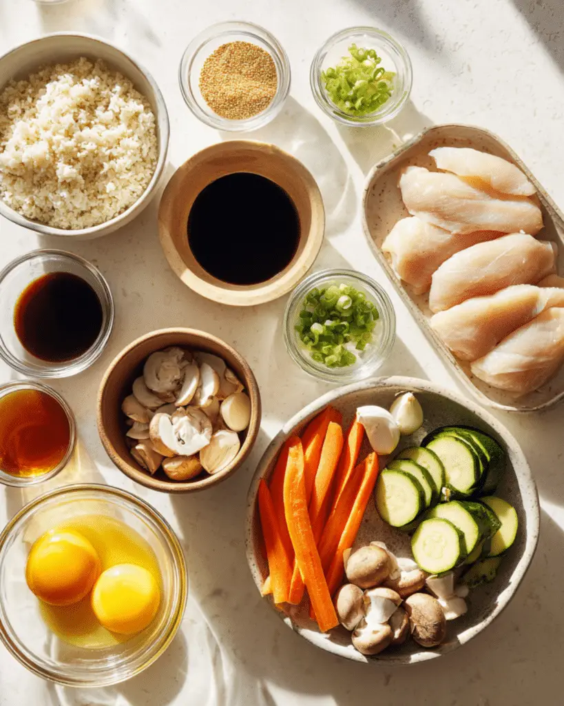 You won’t need side dishes or complicated pairings—this is a complete plate. The recipe includes tender marinated chicken, crisp-tender vegetables like zucchini, carrots, and mushrooms, and perfectly seasoned jasmine fried rice with scrambled egg and green onions. Each element works together to deliver a balanced, hearty dish that feels indulgent but is easy enough for weeknights.