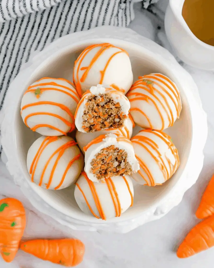 Carrot Cake Cheesecake Bites are a no-bake dessert combining spiced carrot cake mix with creamy cheesecake filling, coated in white chocolate and finished with an orange drizzle. Perfect for holidays, parties, or quick treats.