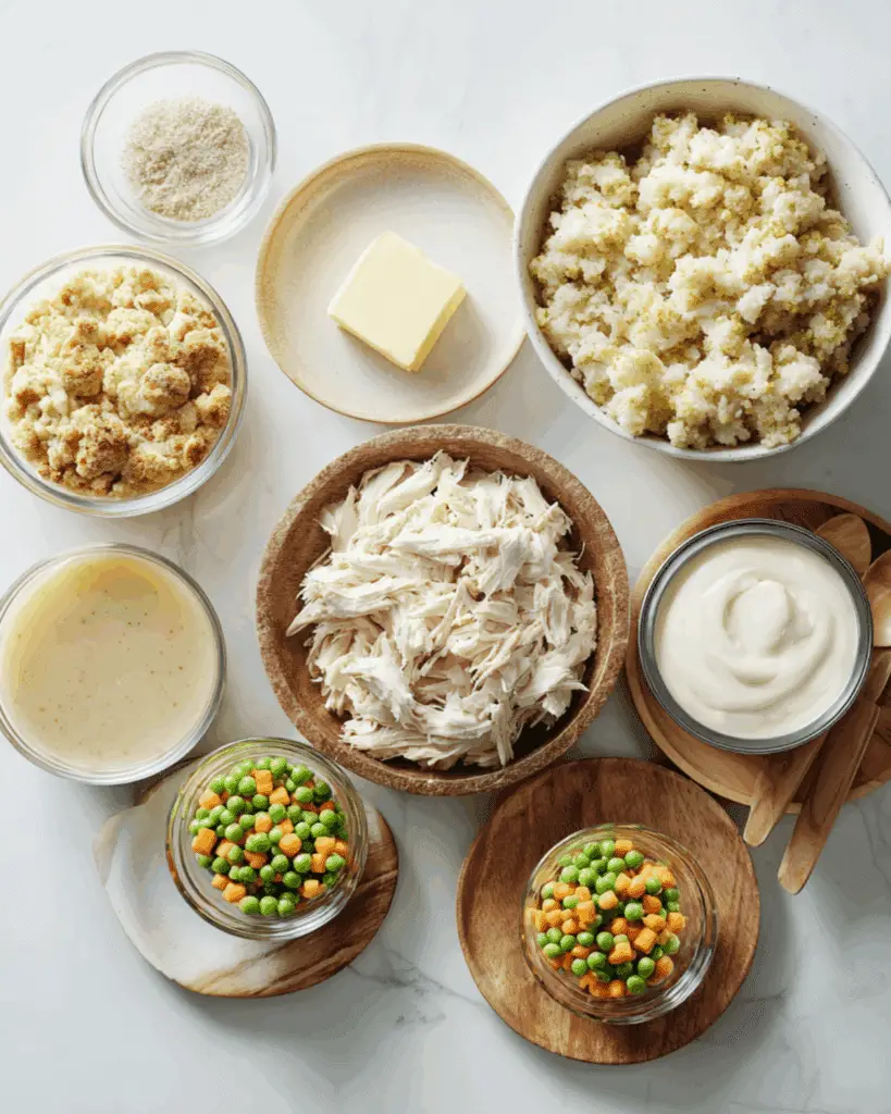 The creamy filling, golden stuffing crust, and mix of savory chicken and veggies make every bite feel like home. Best of all, it’s endlessly customizable—from cheesy twists to make-ahead freezer batches. Add this to your dinner rotation, and you’ll always have a go-to when life gets busy.