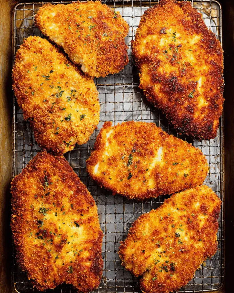 What makes this recipe extra special is the layering of flavors at every step. The breadcrumbs are homemade or high-quality Panko, seasoned with garlic, parsley, and Italian herbs. Cheese isn’t just sprinkled on top—it’s mixed into both the breadcrumbs and the egg wash, ensuring flavor and crispness throughout.