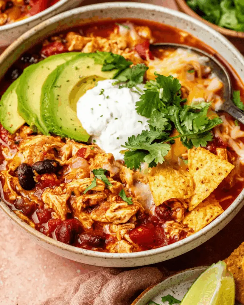 At first glance, Chicken Enchilada Chili may sound like a mashup, but it’s actually a brilliant harmony of two beloved comfort foods. The classic bold spices of chili—think cumin, paprika, and chili powder—mingle perfectly with the rich tomato and smoky pepper base of enchilada sauce. Add a can of fire-roasted tomatoes, a touch of garlic, and green chiles, and you’ve got a deeply layered flavor profile that’s both familiar and exciting.