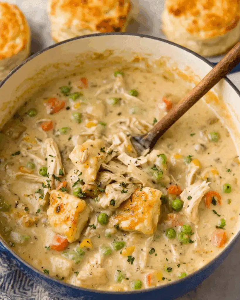 Chicken Pot Pie Soup stores well for up to 4–5 days in the refrigerator when sealed in an airtight container. The flavor deepens overnight, making it perfect for meal prep.
