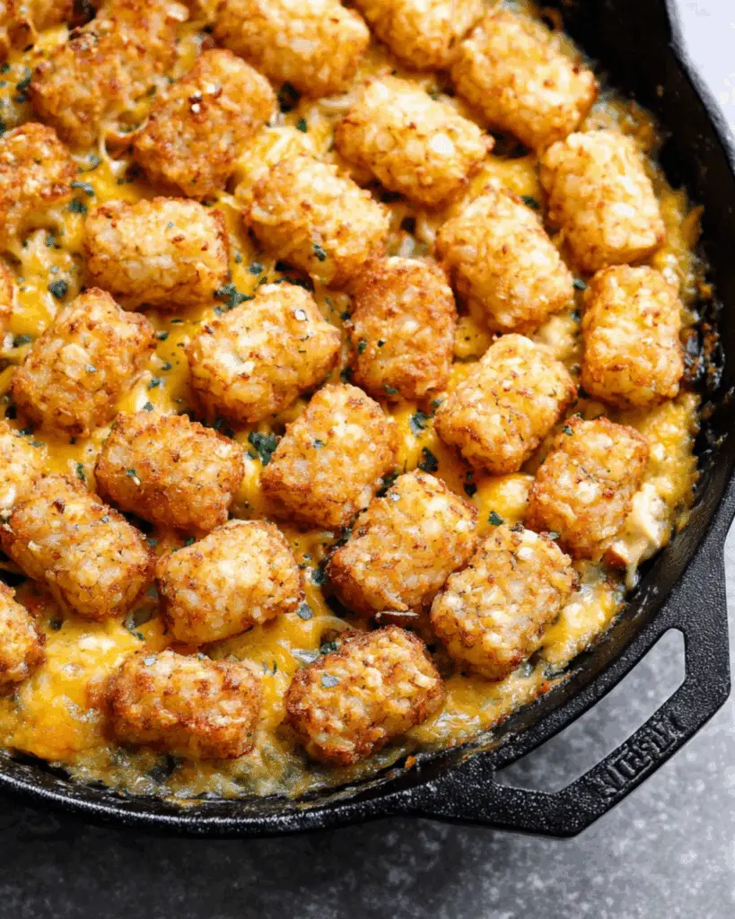 Absolutely. While a cast iron skillet adds a rustic touch and holds heat well, a 9-inch square casserole dish or any oven-safe baking dish will work just fine. Just ensure the filling is spread evenly, and the tater tots are arranged in a single layer to crisp up properly.