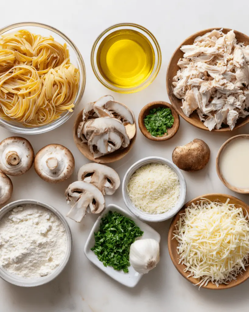 A classic Tetrazzini uses a roux made from butter and flour, whisked with broth and cream. For an easier shortcut, many cooks add a can of cream of mushroom soup, though homemade sauce delivers fresher flavor.