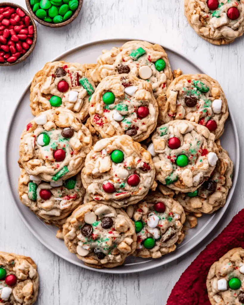 The phrase “everything but the kitchen sink” couldn’t be more accurate here. These cookies combine an unlikely yet delicious mix of snacky, crunchy, melty, and colorful ingredients all in one dough. Unlike traditional chocolate chip cookies, Christmas Kitchen Sink Cookies are packed with texture and flavor—from crispy pretzel bits to soft, gooey white chocolate chips, and that punch of holiday color from red and green M&M’s. Each bite is slightly different, making them a favorite for both kids and adults.