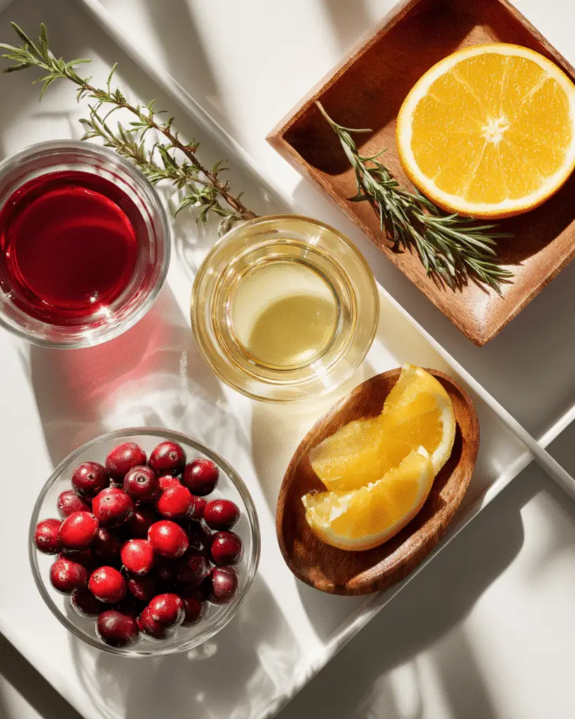 - Garnish with cranberries, rosemary, and a slice of orange.