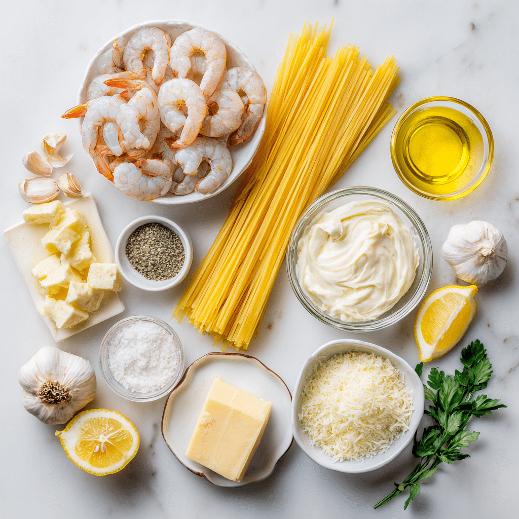 Ingredients for the Best Creamy Lemon Garlic Shrimp Linguine