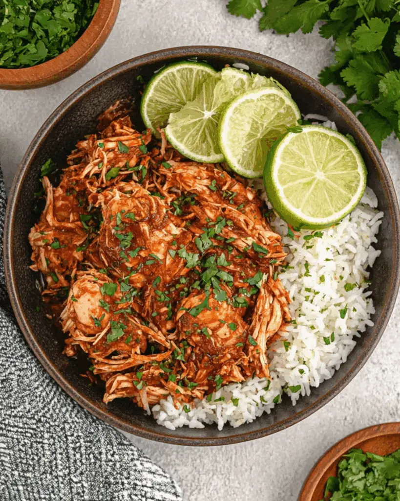 This isn’t your average shredded chicken recipe. The blend of tangy lime, savory tomato sauce, and earthy spices like cumin and chili powder gives every bite deep, satisfying flavor. Thanks to the slow cooker, the chicken turns out unbelievably moist and perfectly seasoned—no babysitting needed.