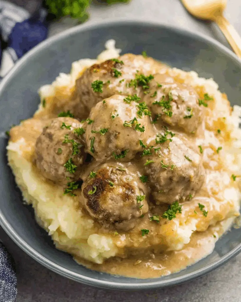 Swedish meatballs are defined by their subtly spiced flavor and their signature creamy brown gravy. Unlike Italian-style meatballs with tomato sauce, these use a blend of ground meats, warm spices like nutmeg, and a luxurious sauce made from beef broth, cream, and a touch of Worcestershire. The result is silky, savory, and unlike anything else.