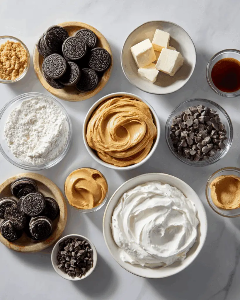 | OREOs (whole) | Forms the rich chocolate base with crunch and sweetness |