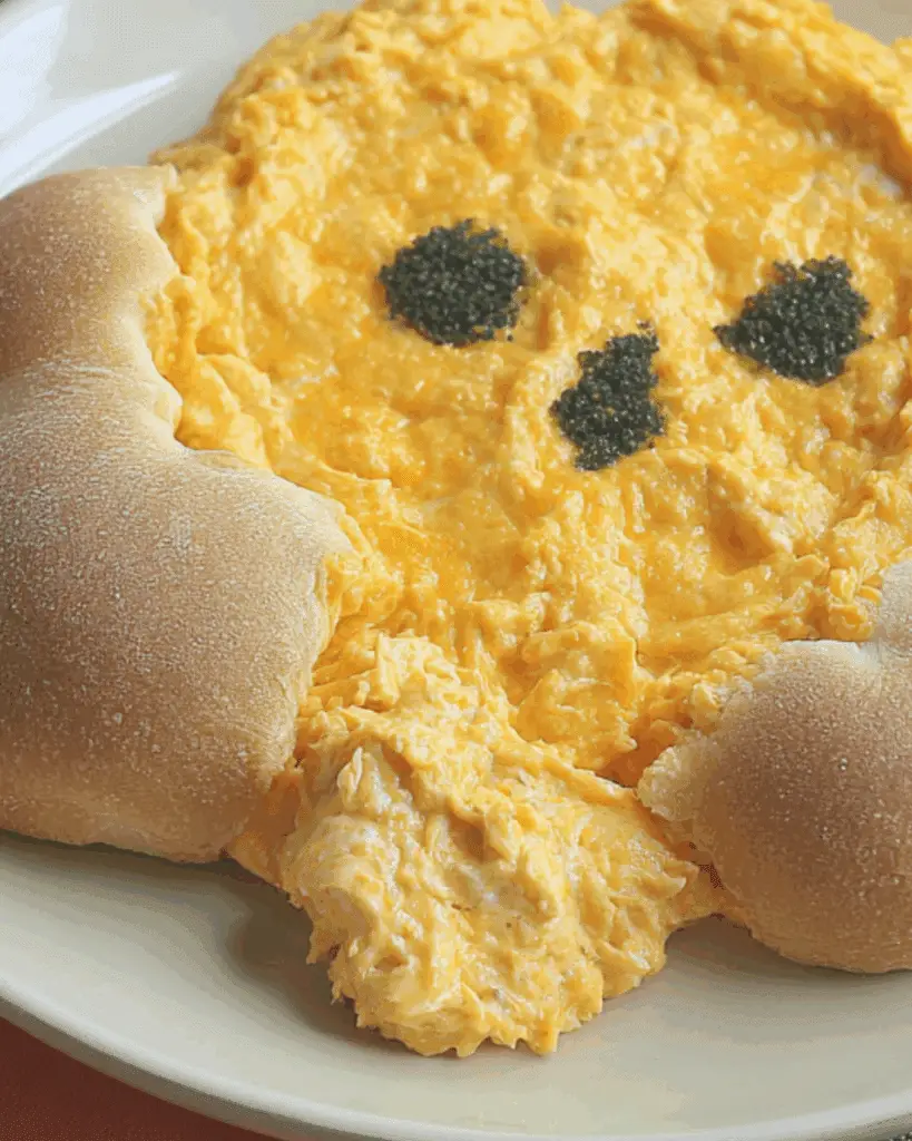 Most buffalo dips are tossed into a baking dish and called a day. But this version gets creative with presentation and texture—crusty on the outside, creamy in the middle. The pizza dough bakes golden and fluffy, offering a homemade roll in every scoop. If you’re searching for more elevated Halloween appetizers, check out our Creepy Deviled Eggs for Halloween—another creepy-cute idea to pair with this dish.