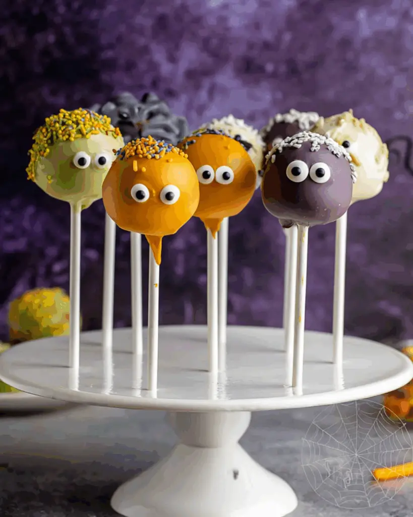 Halloween Cake Pops are spooky, bite-sized treats made by combining crumbled cake with frosting, shaping them into balls, dipping in candy coating, and decorating them into fun Halloween-themed designs like ghosts, pumpkins, and mummies. Perfect for parties, kids, and festive gatherings.