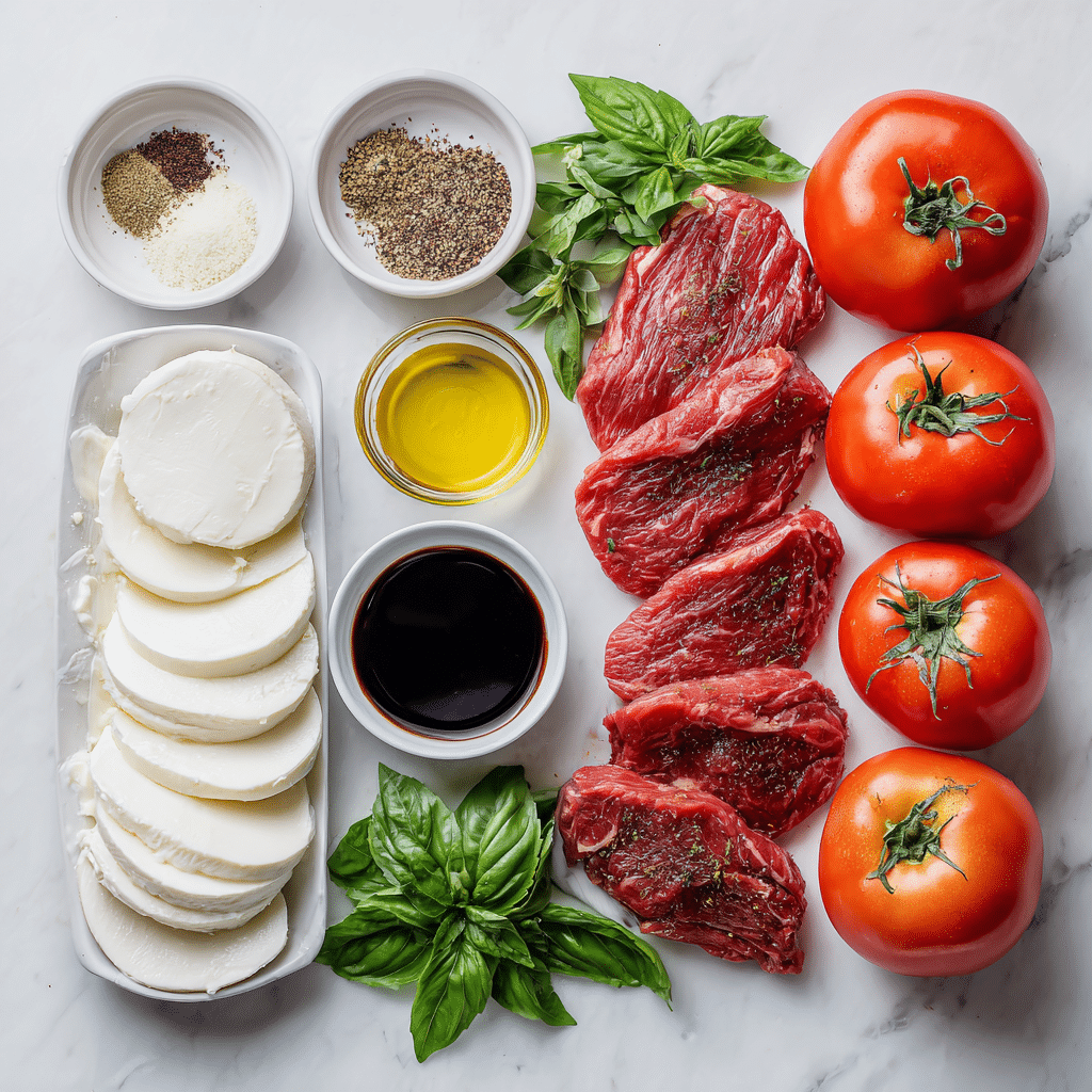 Ingredients for Heirloom Tomato and Steak Caprese