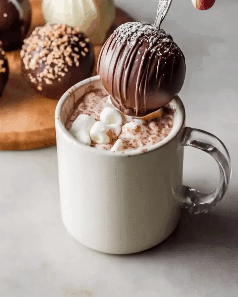 Hot Chocolate Bombs are a fun and cozy winter treat made from chocolate spheres filled with hot cocoa mix and marshmallows. When hot milk is poured over them, they melt into a rich, indulgent drink.