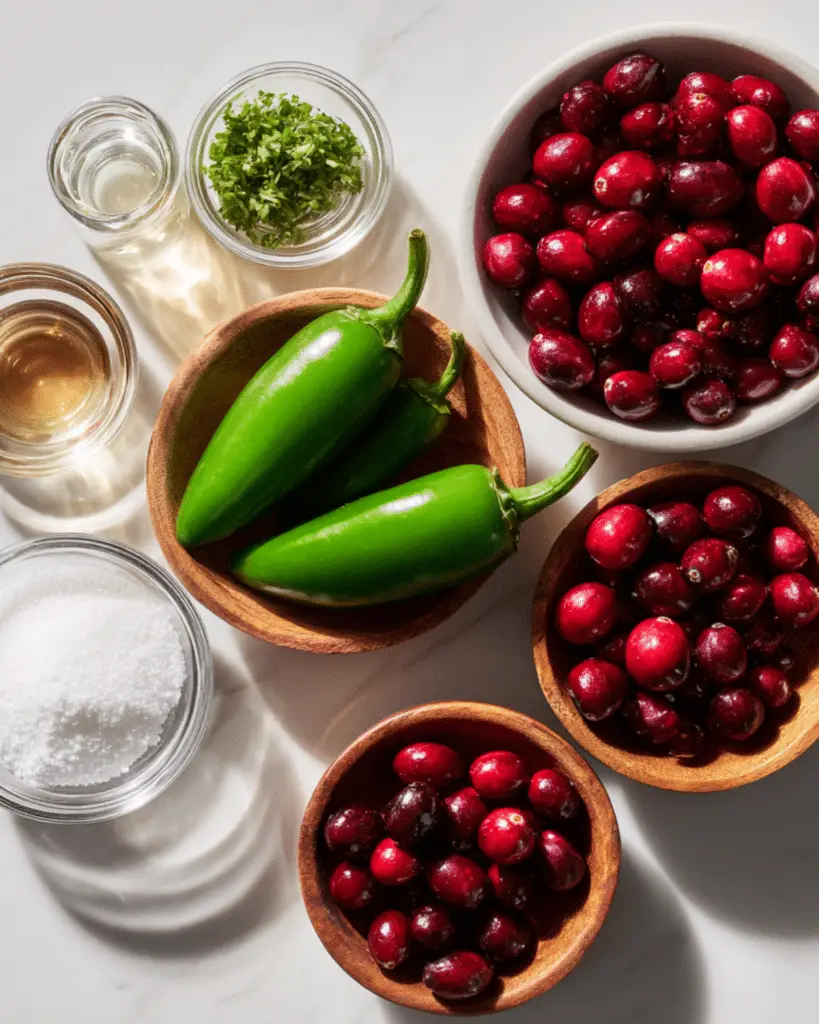 - Sugar: Balances the tart cranberries and spicy peppers.