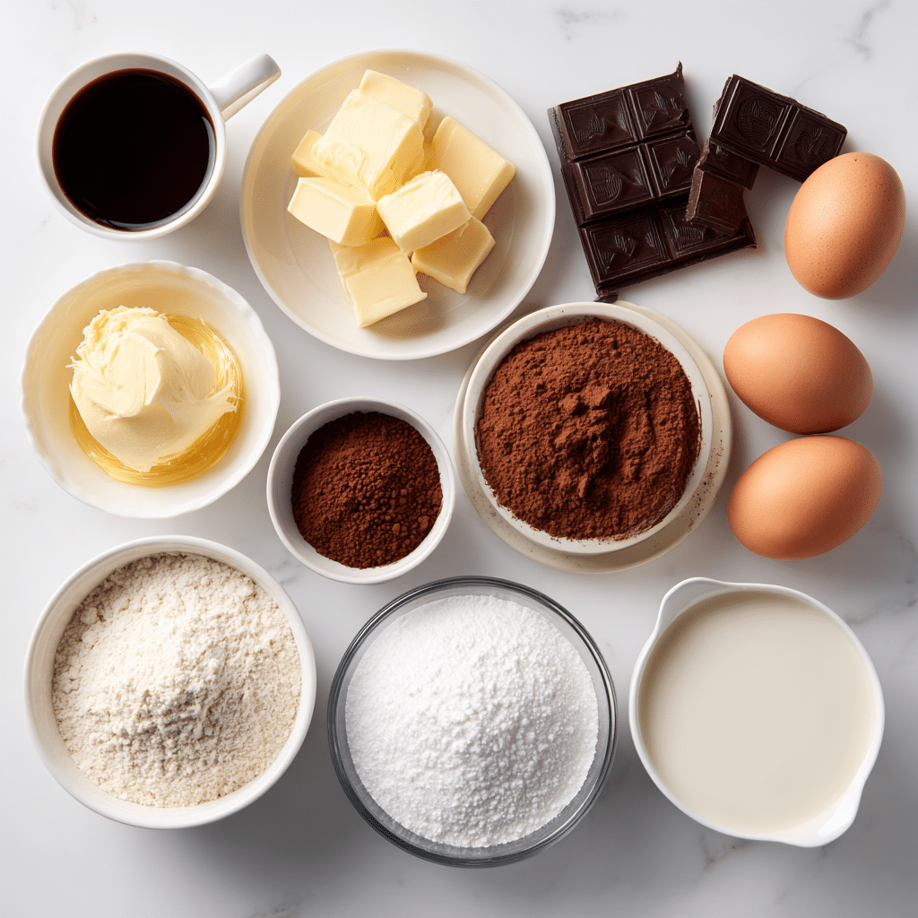 - For frosting: 1/4 cup butter, 1/4 cup cocoa powder, 3 cups powdered sugar, 1/4 cup milk, 1 tsp vanilla extract