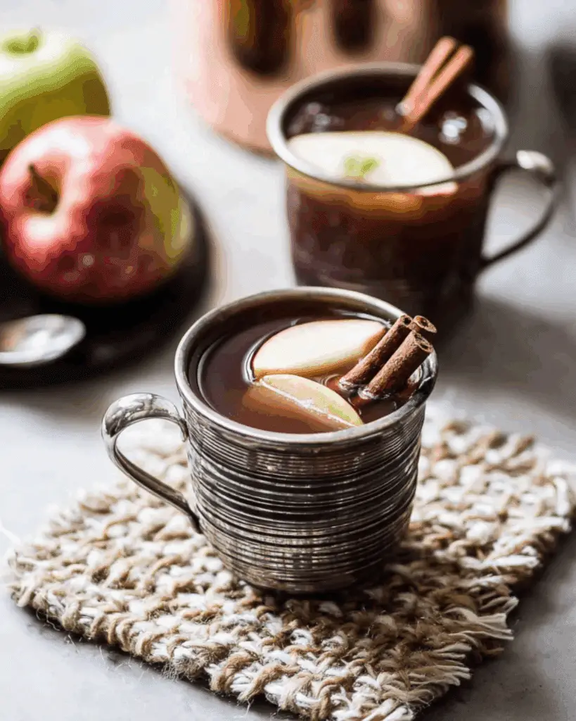 - Garnish with apple slices, cinnamon sticks, or orange peel.