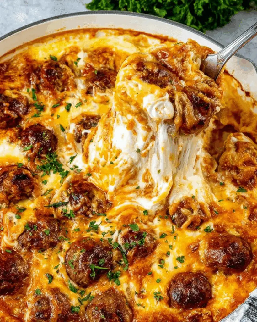 Absolutely. You can fully assemble the casserole—meatballs, sauce, cheese, and all—and refrigerate it for up to 24 hours before baking. This makes it perfect for meal prep or preparing ahead for guests. Just add an extra 10–15 minutes to the baking time if cooking straight from the fridge.