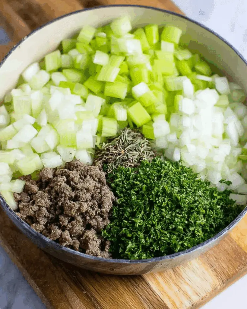 Classic stuffing flavors shine through when you combine onion, celery, garlic, and herbs in the right balance. These aromatics provide the base layer of flavor.