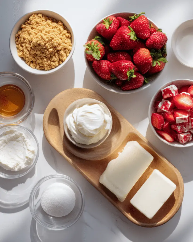 Creating the perfect No Bake Strawberry Delight starts with fresh, high-quality ingredients. Here’s what you’ll need: