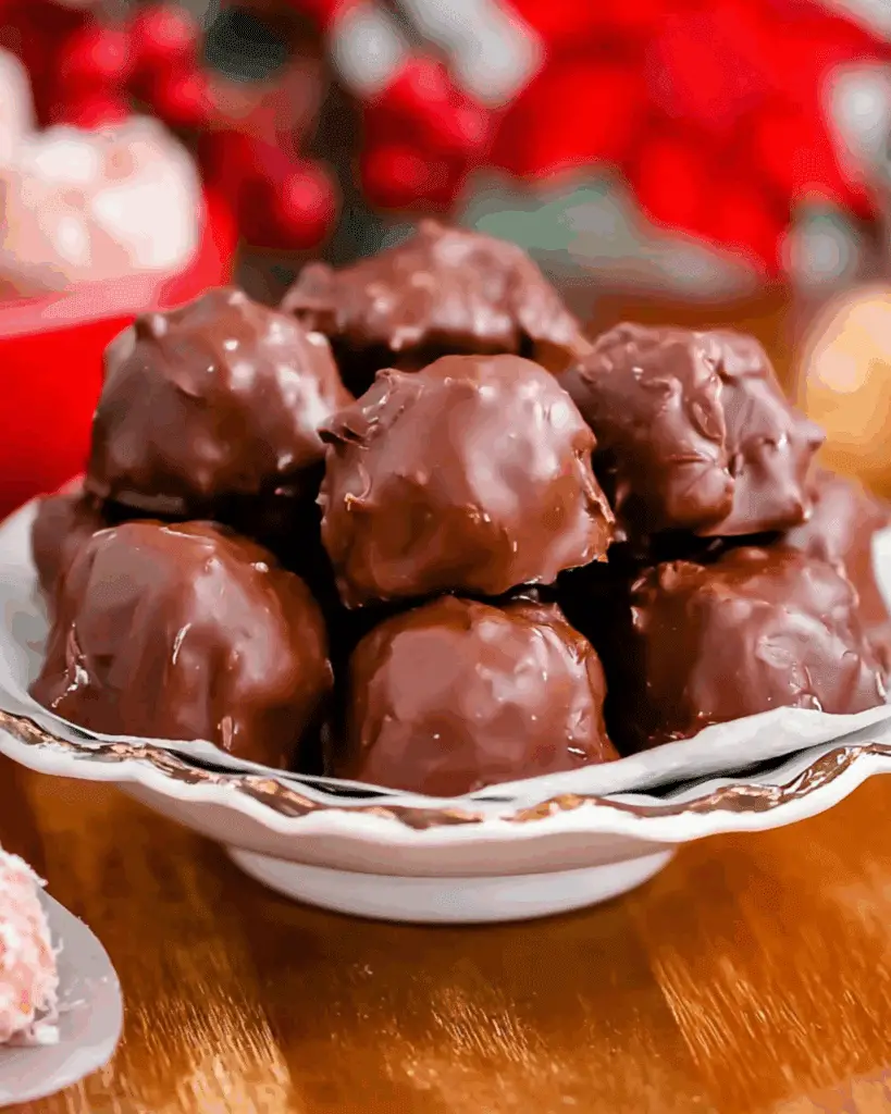 Old-Fashioned Martha Washington Candy is a classic no-bake holiday treat filled with sweet coconut, cherries, pecans, and coated in smooth chocolate. Perfect for gifting or sharing year-round.
