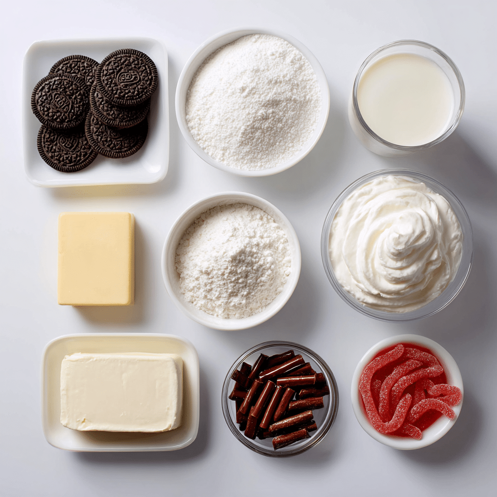 Ingredients for the Best Oreo Dirt Cake with Gummy Worms