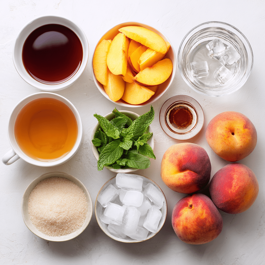 You will need black tea, fresh peaches, sugar, and water. Each ingredient contributes to the overall flavor, making the drink both refreshing and satisfying.