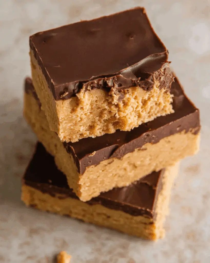 Peanut butter bars store beautifully. Keep them in an airtight container in the refrigerator for up to 2 weeks. They stay soft yet firm, with the chocolate layer holding up well even after several days.