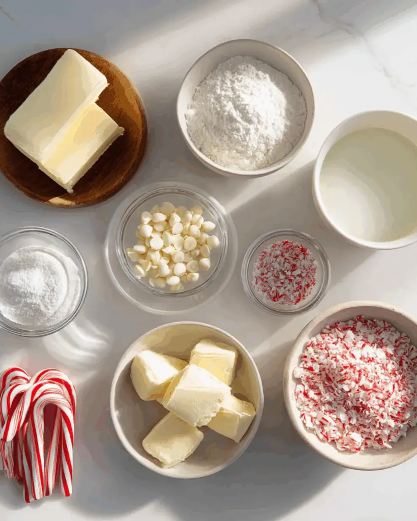 | White Chocolate Chips | ¾ cup | Creamy contrast to the peppermint crunch |