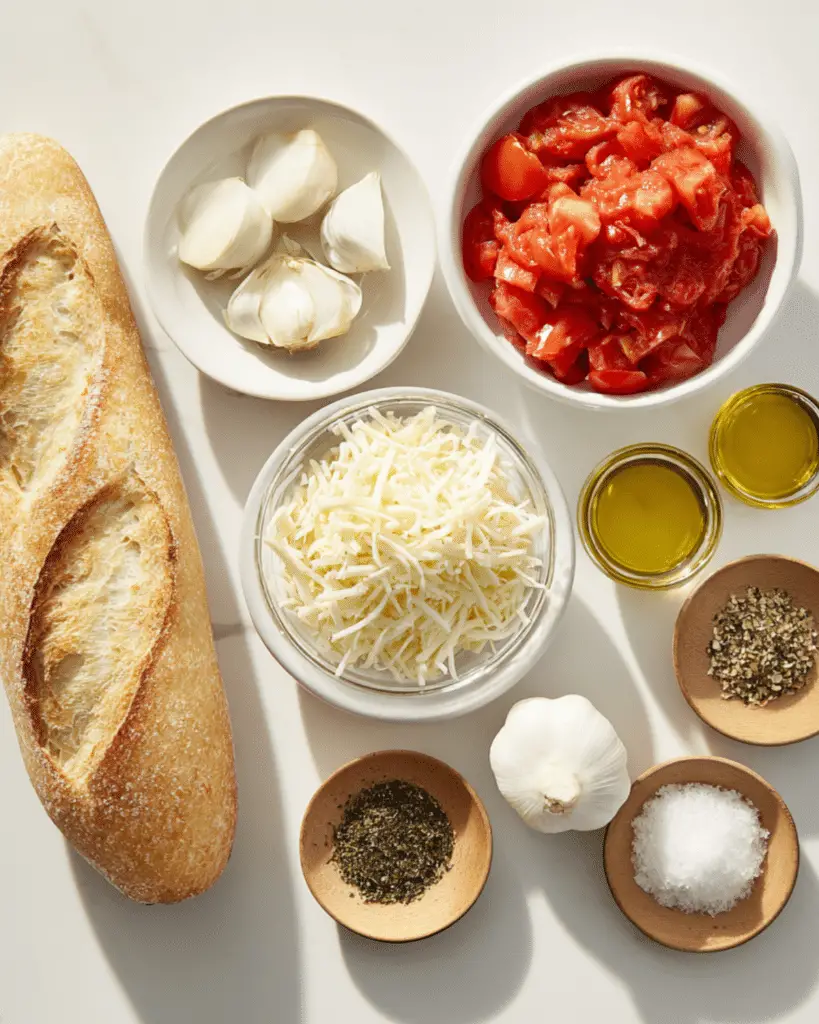 Before you start assembling, gather everything you need for this cheesy delight. Here’s a simple list based on the classic French bread pizza method: