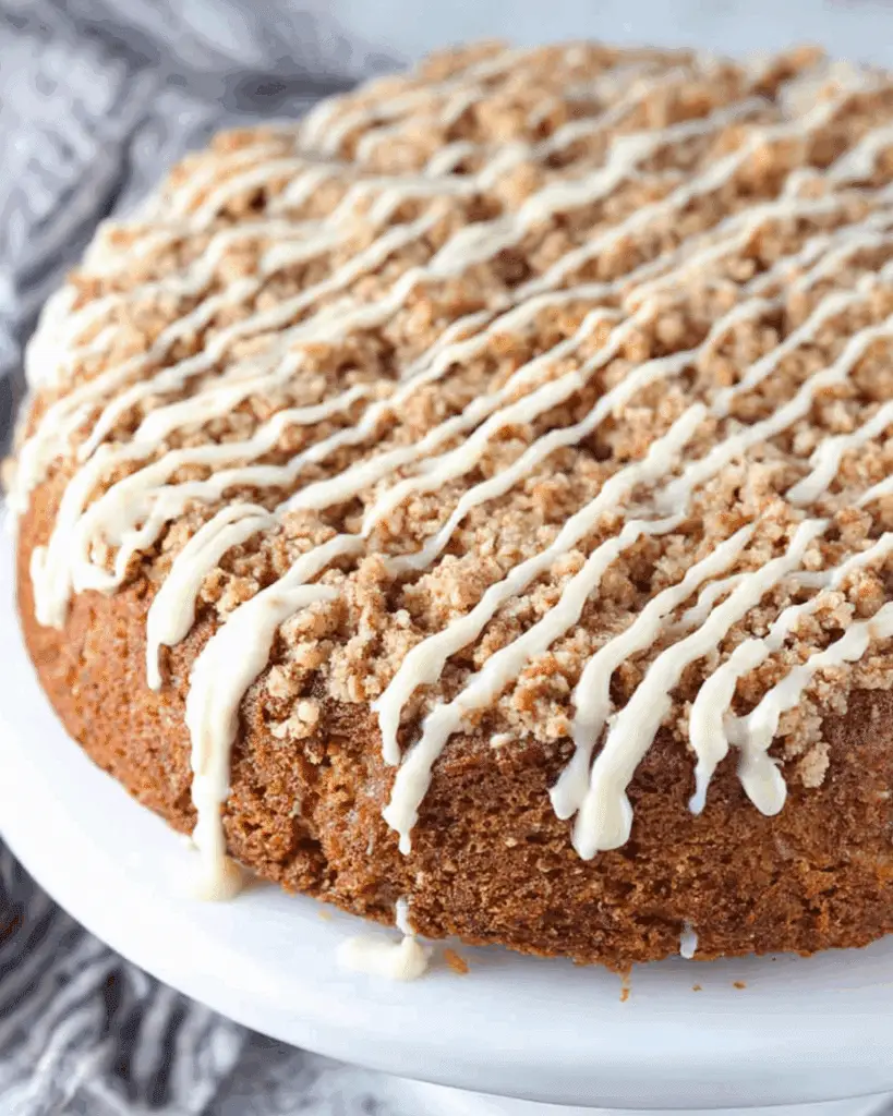 What really elevates this cake is the pecan-studded streusel. It adds crunch, sweetness, and a delightful contrast to the soft, spongy cake below. The drizzle of simple vanilla glaze? Just the cherry on top.