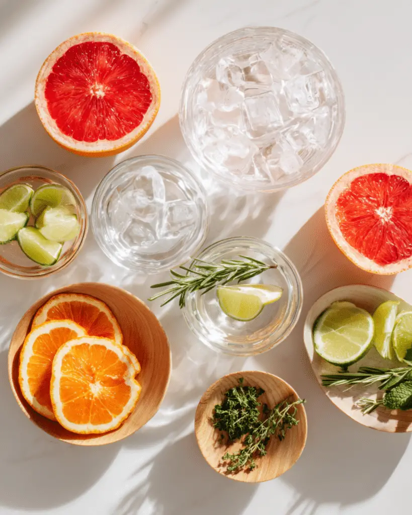 - Optional garnishes: orange slices, grapefruit slices, fresh rosemary, mint, edible flowers, rosé ice cubes