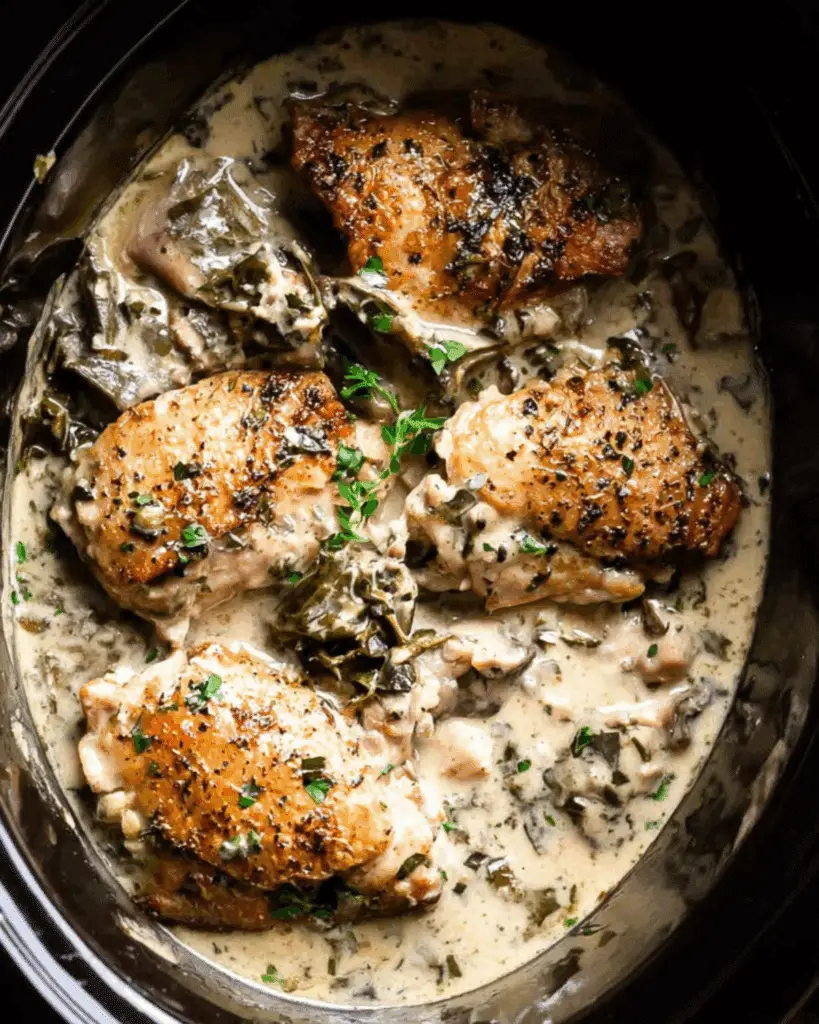 Cook on low for 4–6 hours or on high for 2–3 hours until the chicken is fork-tender and nearly falling apart. The sauce should be thick, creamy, and incredibly aromatic by this point.