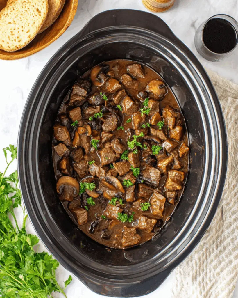 - (Optional) Sear the meat: In a hot skillet, brown the beef in batches using vegetable oil. Transfer seared beef to your slow cooker.