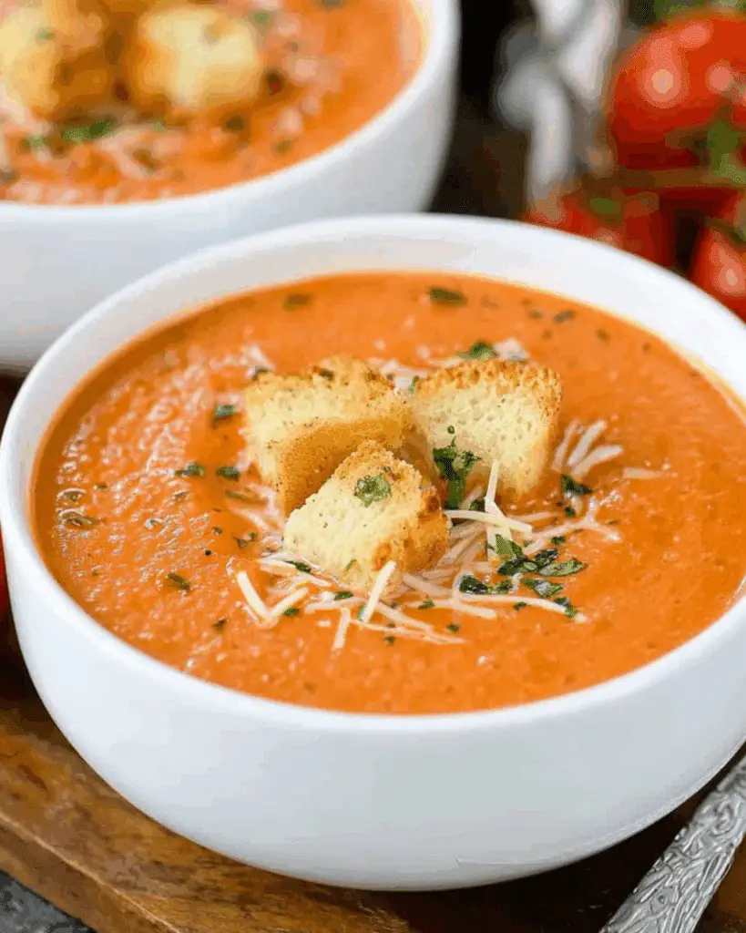 This creamy tomato soup with fresh tomatoes is a comforting homemade recipe made by roasting ripe tomatoes, garlic, onion, and herbs. Perfect for cozy meals and easily customizable with cream, basil, or grilled cheese.